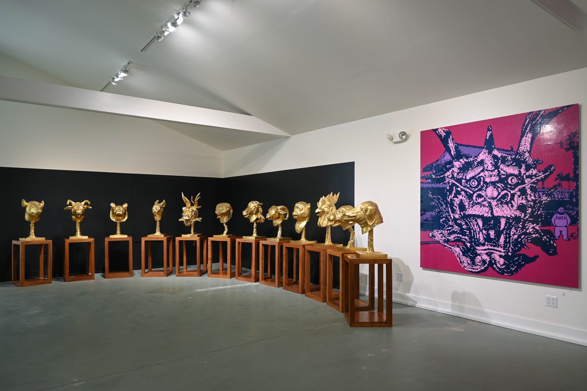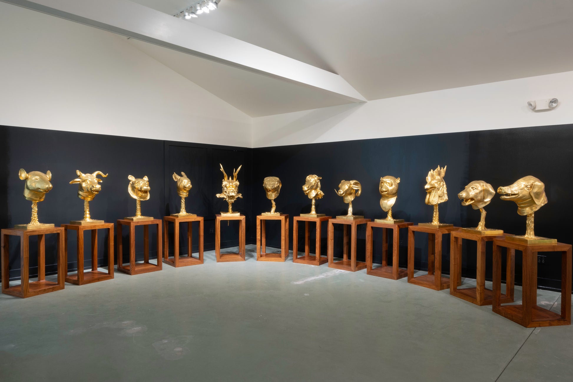 Featured in Mother Nature in the Bardo: Circle of Animals/Zodiac Heads: Gold is cultural resistance cast in bronze and gold. Reimagining the twelve zodiac heads looted from Beijing’s Old Summer Palace (Yuanmingyuan) in 1860 by Anglo-French force. Five of the twelve heads (dragon, dog, snake, ram, and rooster) were never recovered. Using references from the Qing dynasty Ai Weiwei completed the set to restore what history shattered.