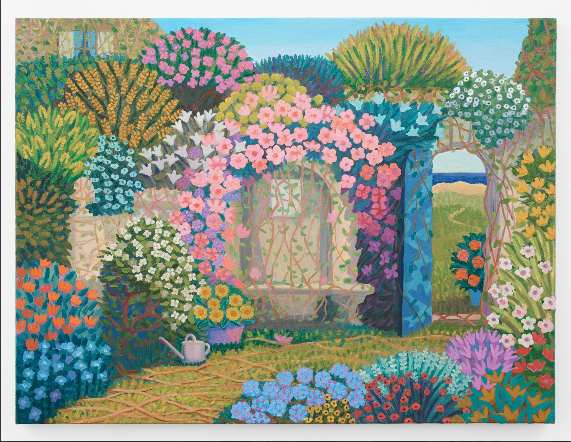 Day at Grey Gardens (2024) reflects his interest in American domestic mythology. Inspired by the storied Long Island estate of Edith and “Little Edie” Beale, immortalized in the 1975 film Grey Gardens, the painting resists literalism. Instead, Heidkamp offers a glowing meditation on time, memory, and mood.